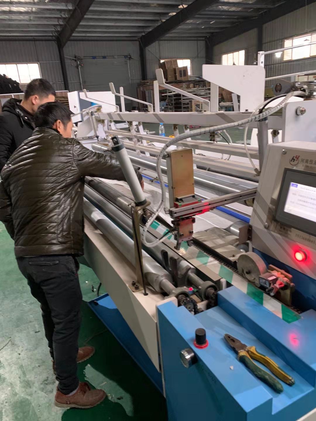 安徽肥西縣張總在2016.7.21號(hào)在恒源紙品機(jī)械訂購一套1880衛(wèi)生紙復(fù)卷機(jī),僅僅兩年時(shí)間兩年,張總的衛(wèi)生紙加工廠已達(dá)到月銷百噸,使用原來的1880復(fù)卷機(jī)生產(chǎn)產(chǎn)能嚴(yán)重不足,所以又添加新設(shè)備——全自…......